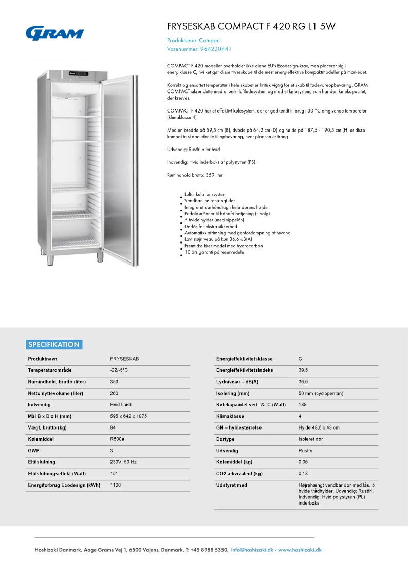 Rustfrit kabinet og dør. Grå ABS indvendigt.
