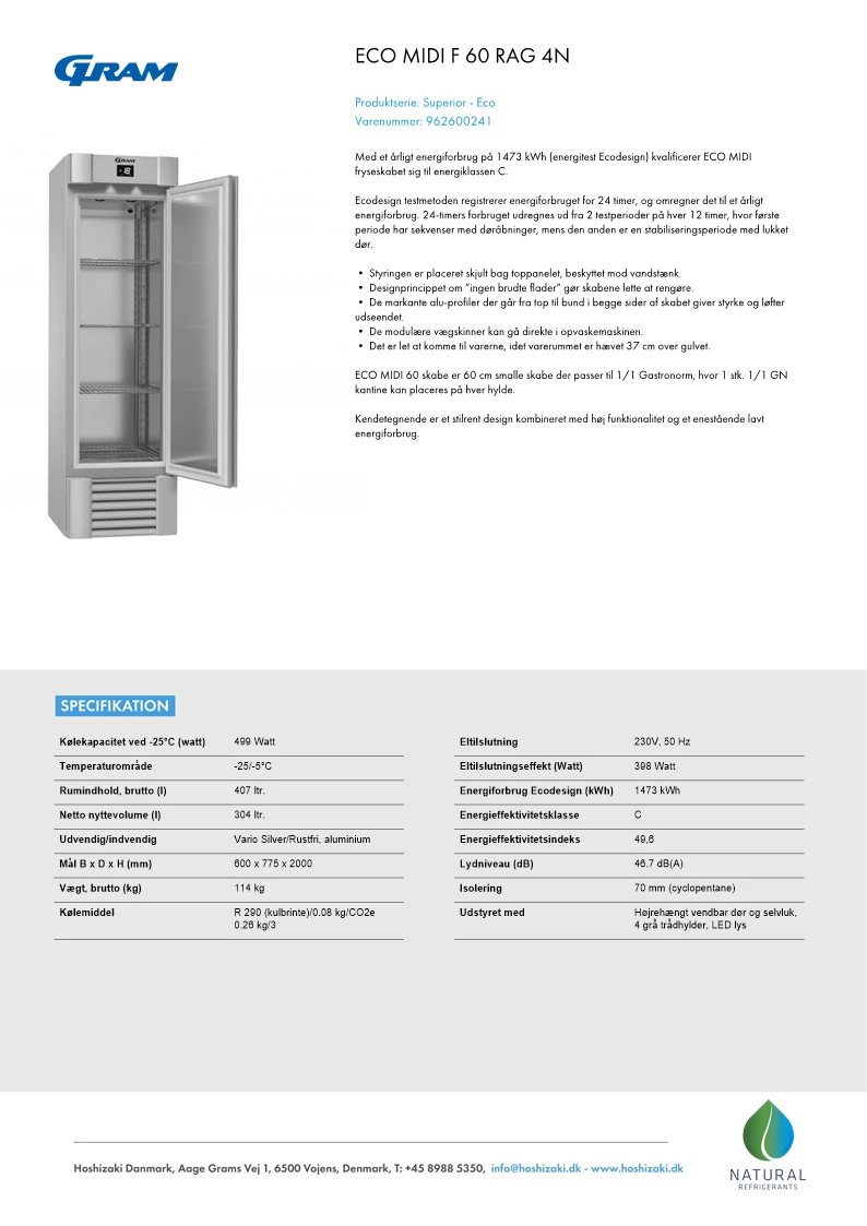 Gram Eco MIDI F60RAG fryseskab