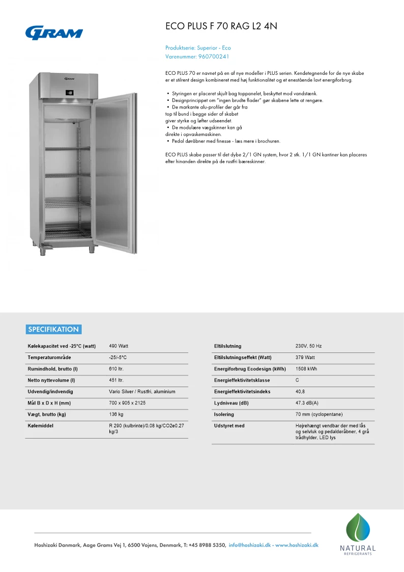 Gram Eco Plus F70 RAG fryseskab, venstrehængt