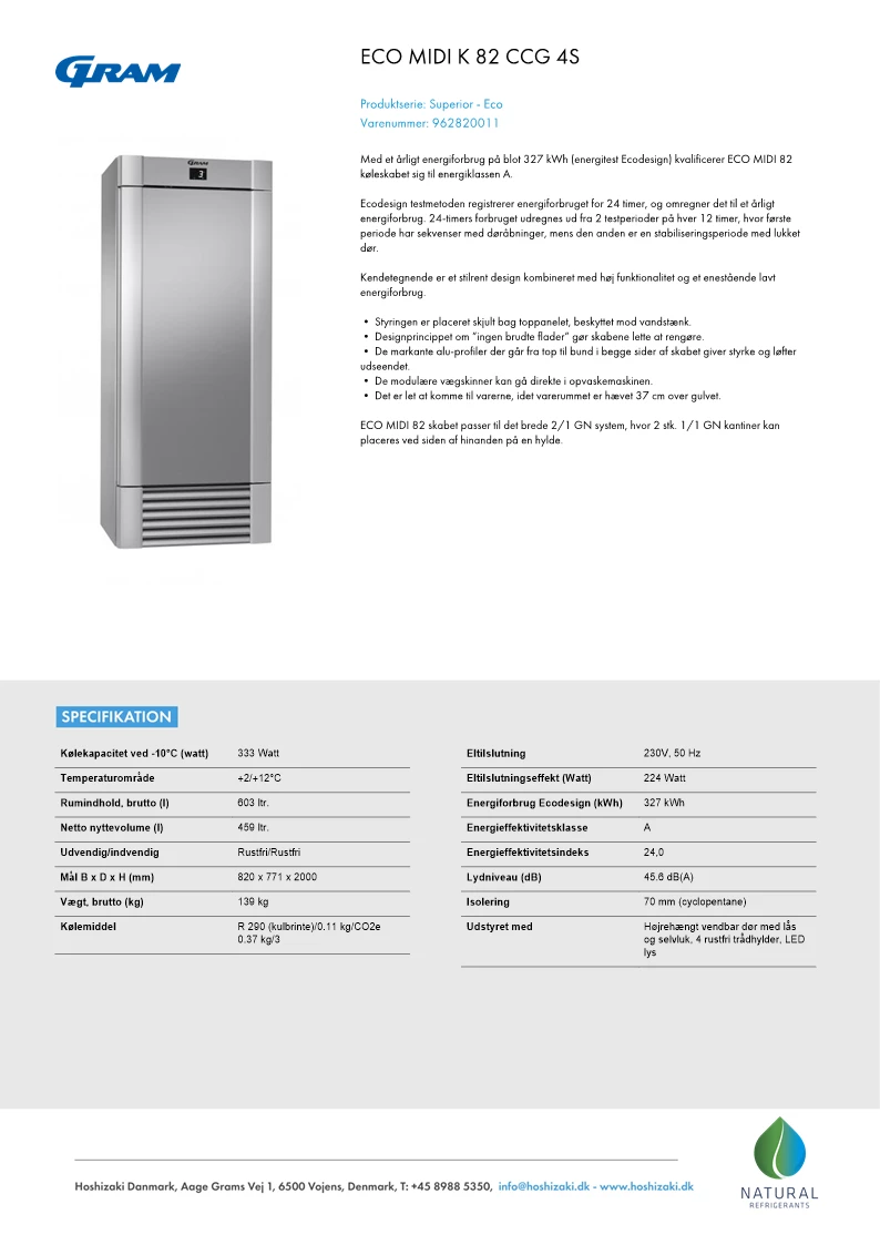 Gram Eco MIDI K82CCG køleskab
