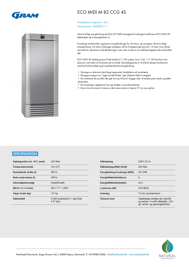 Gram Eco MIDI M82CCG køleskab