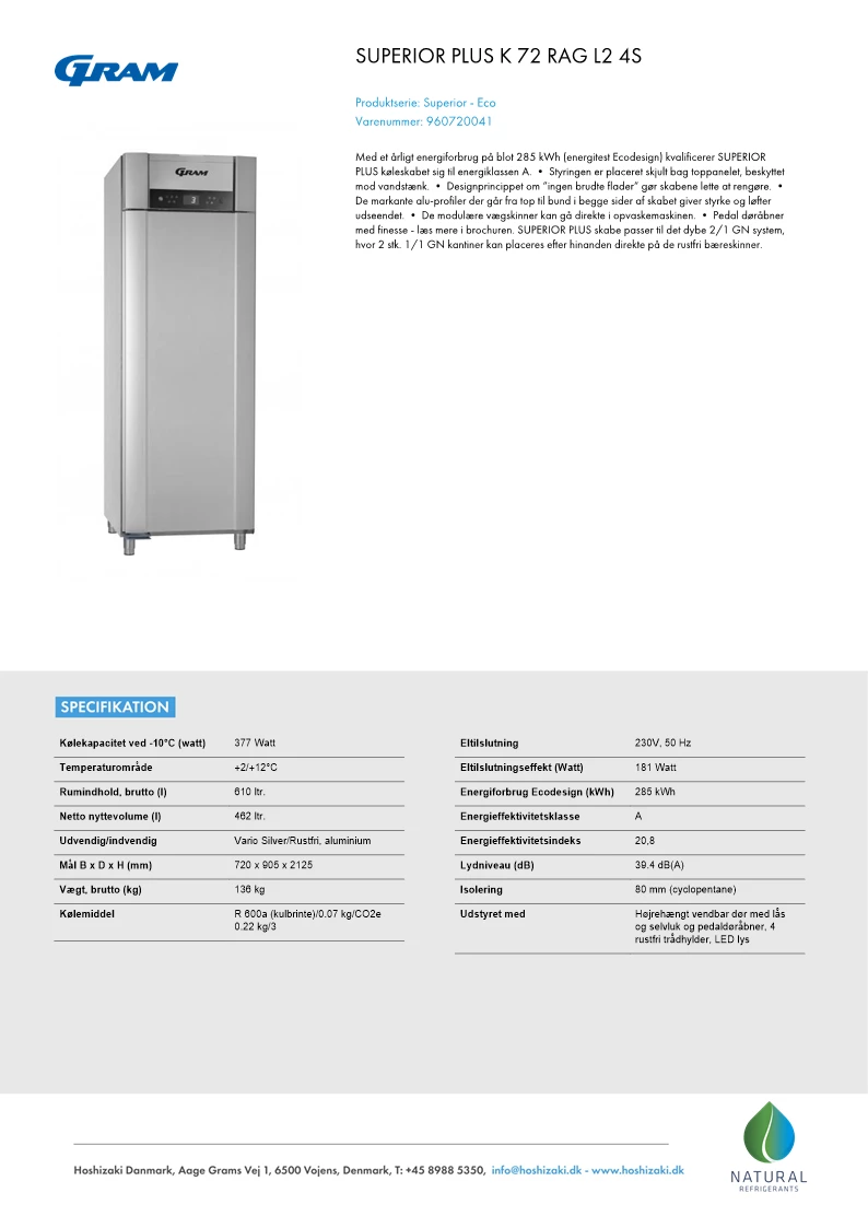 Superlavenergi - energitest EN441, ikrafttræden 1/1 2016. Vario silver/aluminium. Højrehængt vendbar dør. Fodpedal-døråbner. Lås. 4 rustfri trådhylder 2/1 GN.