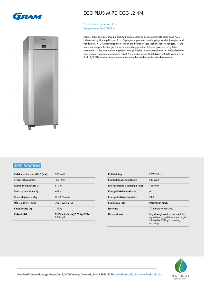Superlavenergi - energitest EN441, ikrafttræden 1/1 2016. Grå stål. Højrehængt vendbar dør. Fodpedal-døråbner. Lås. 4 plastbelagte trådhylder 2/1 GN.
