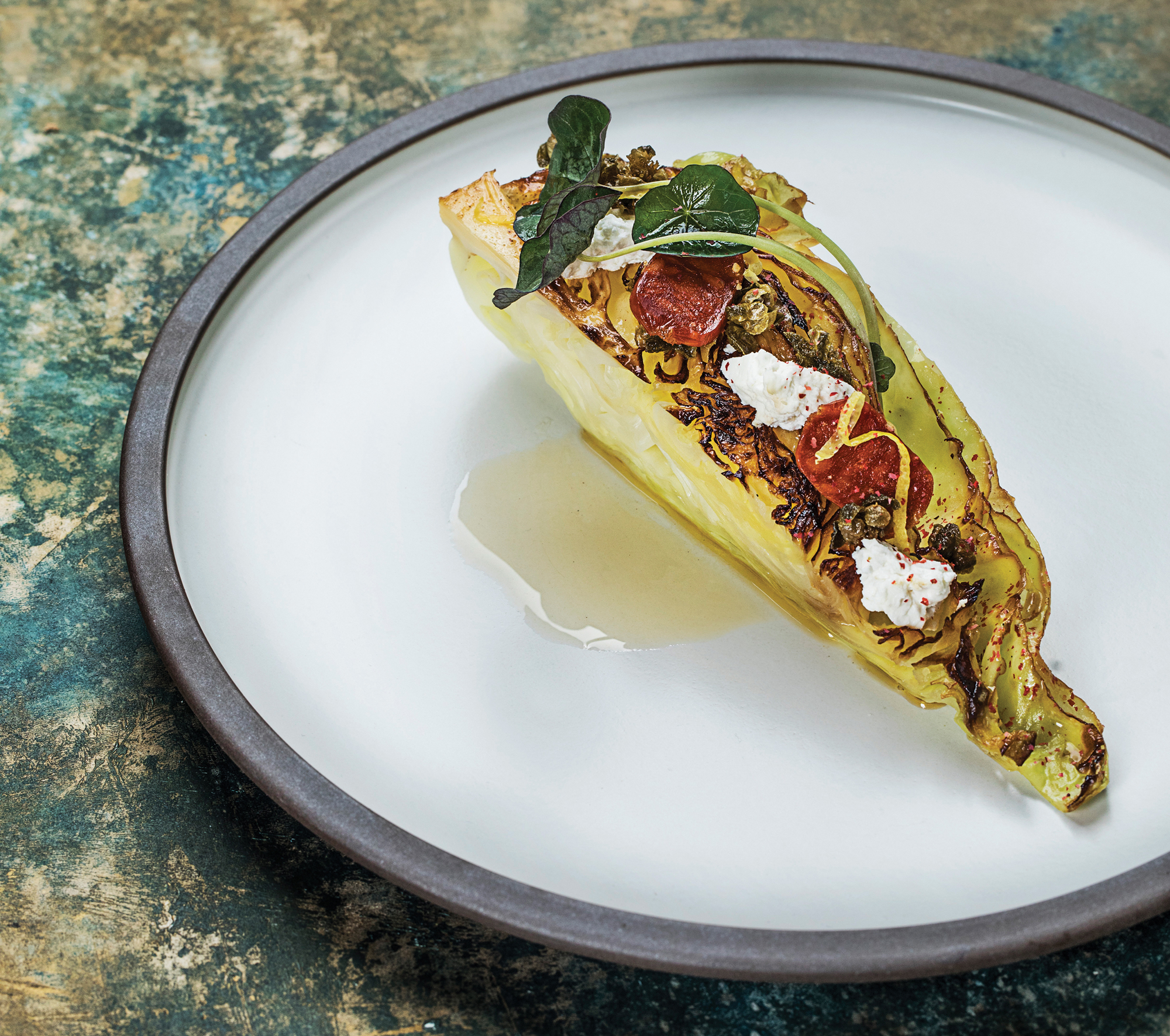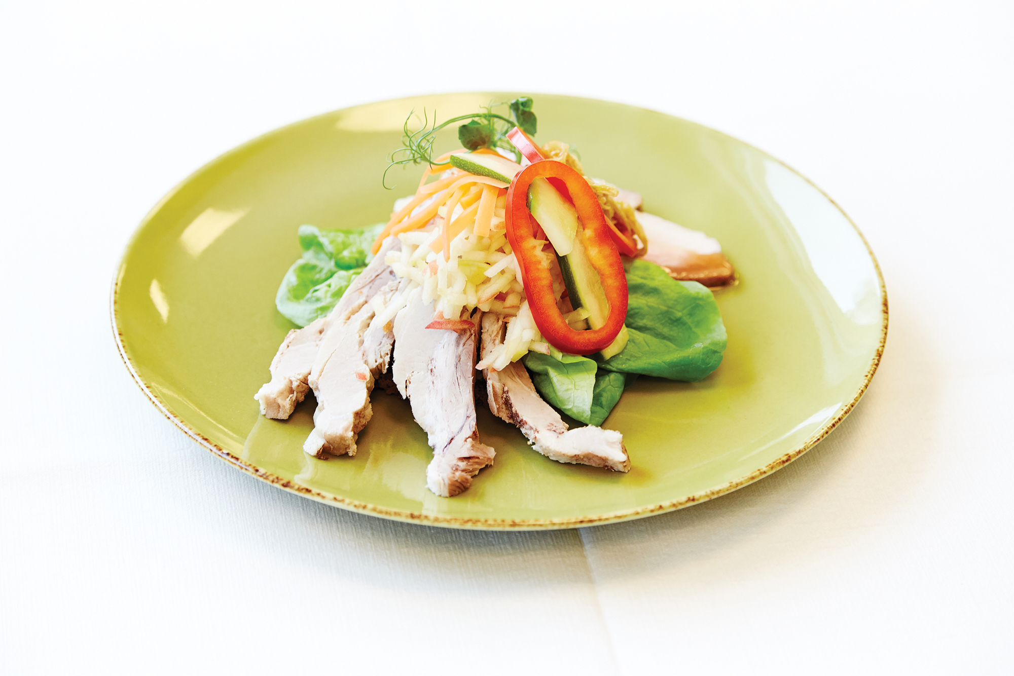 Svinebryst med frisk, syltet og marineret grønt
