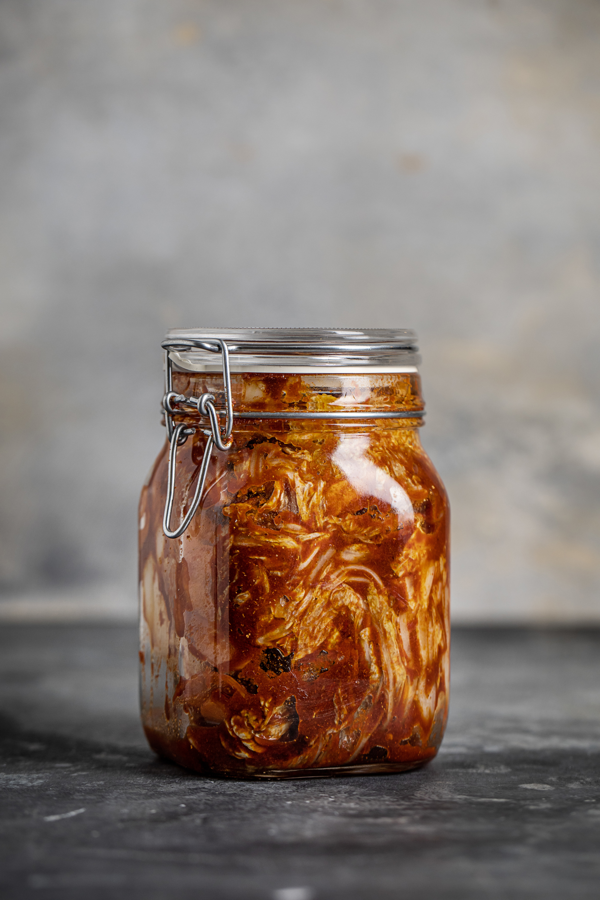 Rillete af lammeskank med syltede svampe, kompot af abrikos og glaskål