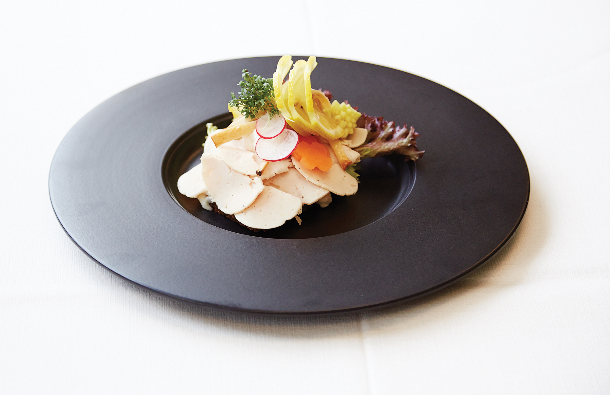 Smørrebrød med kyllingepålæg, rygeost, radiser m.m.