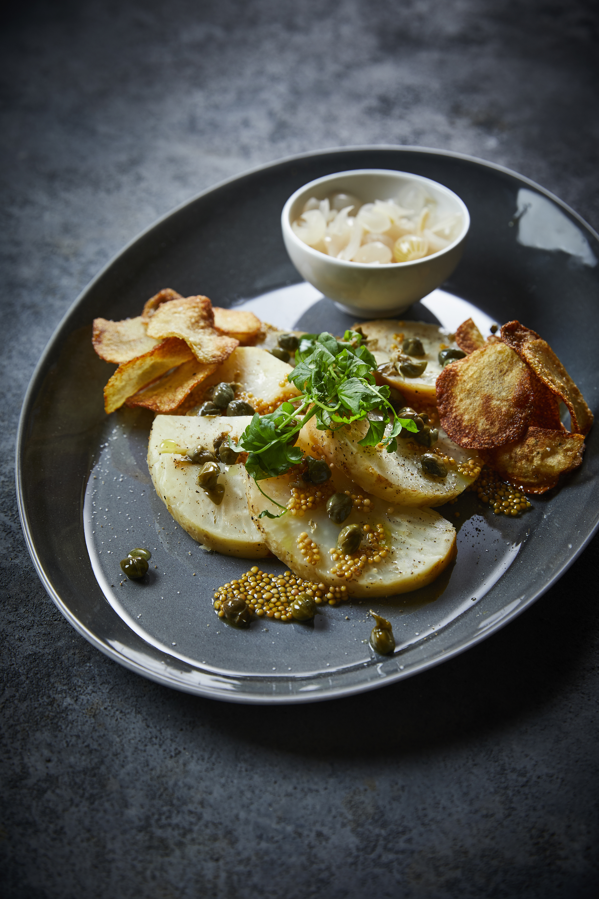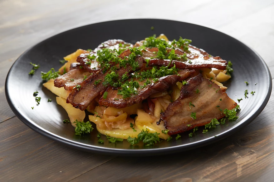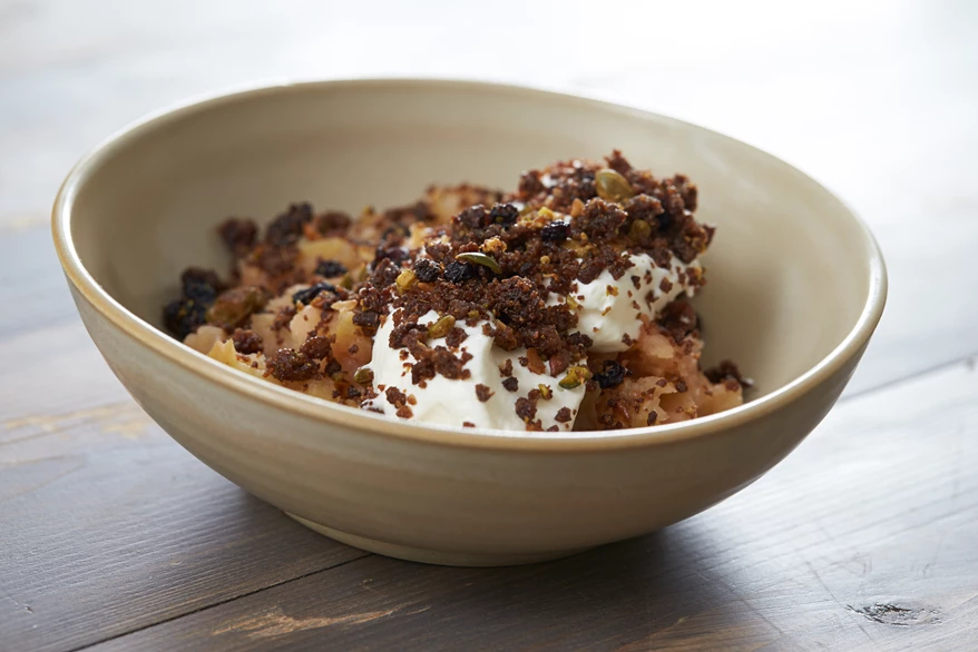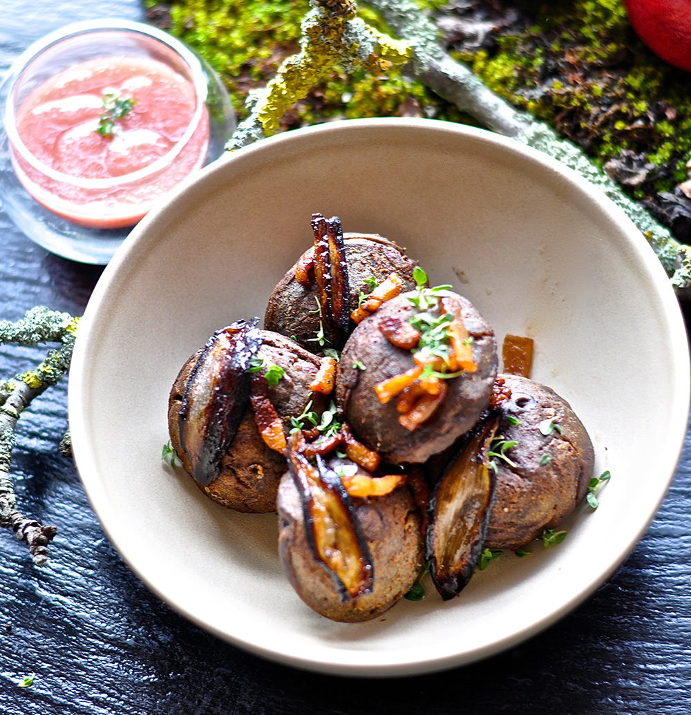 Æbleflæsk med jordskokker - få opskriften fra Hotel Saxkjøbing.