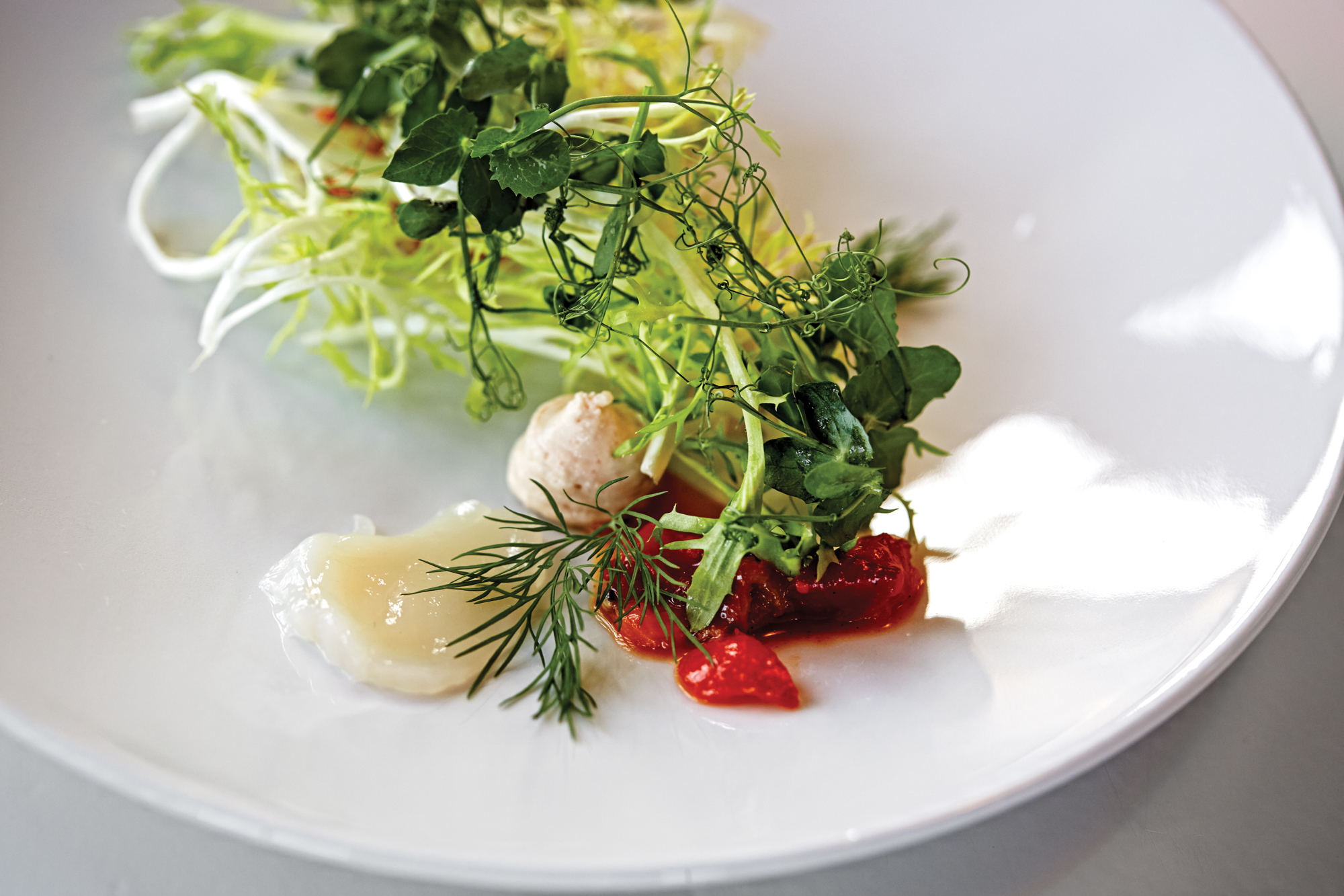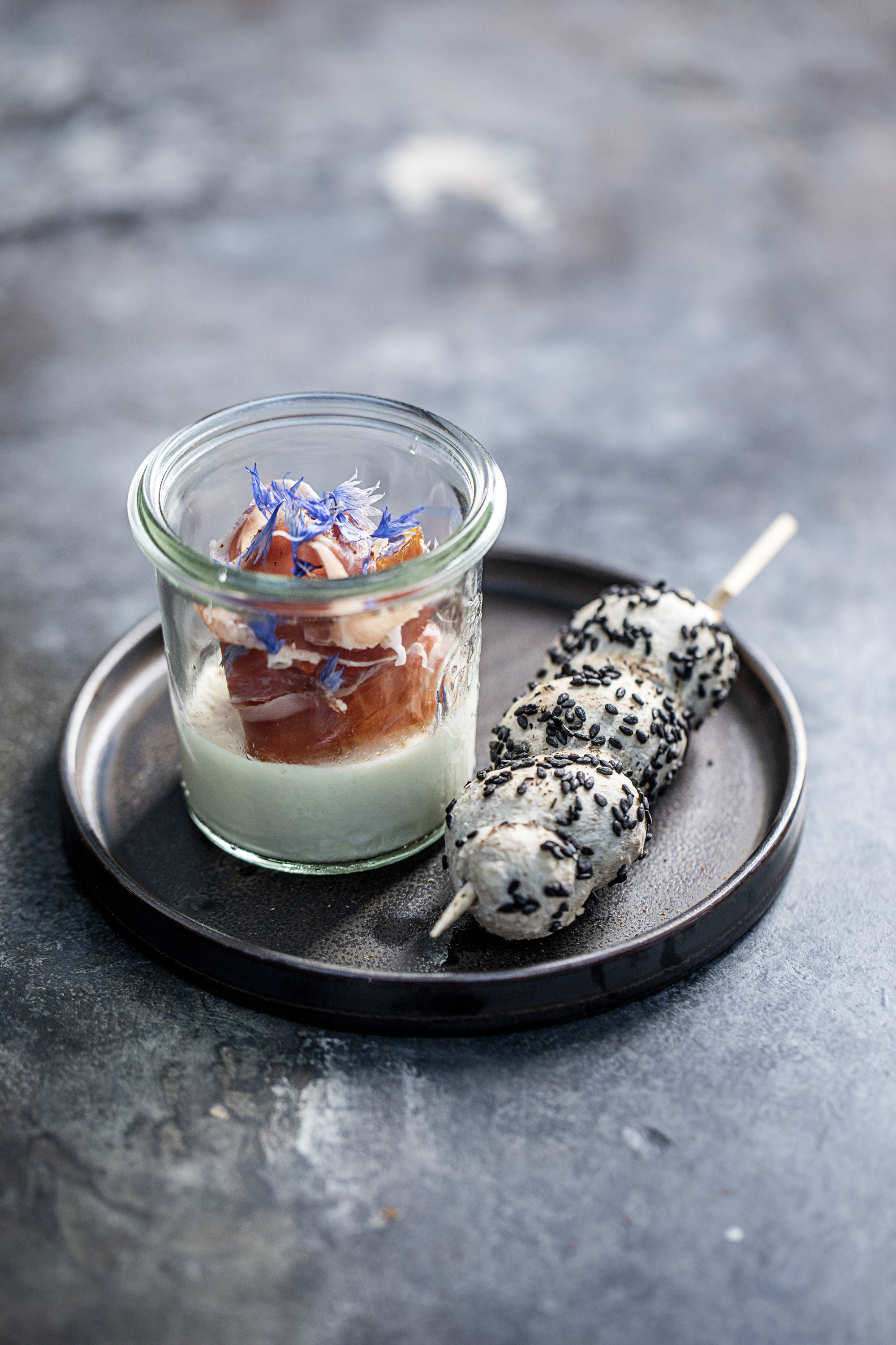 Kammuslinger med hyben, havtorn og laksemousse