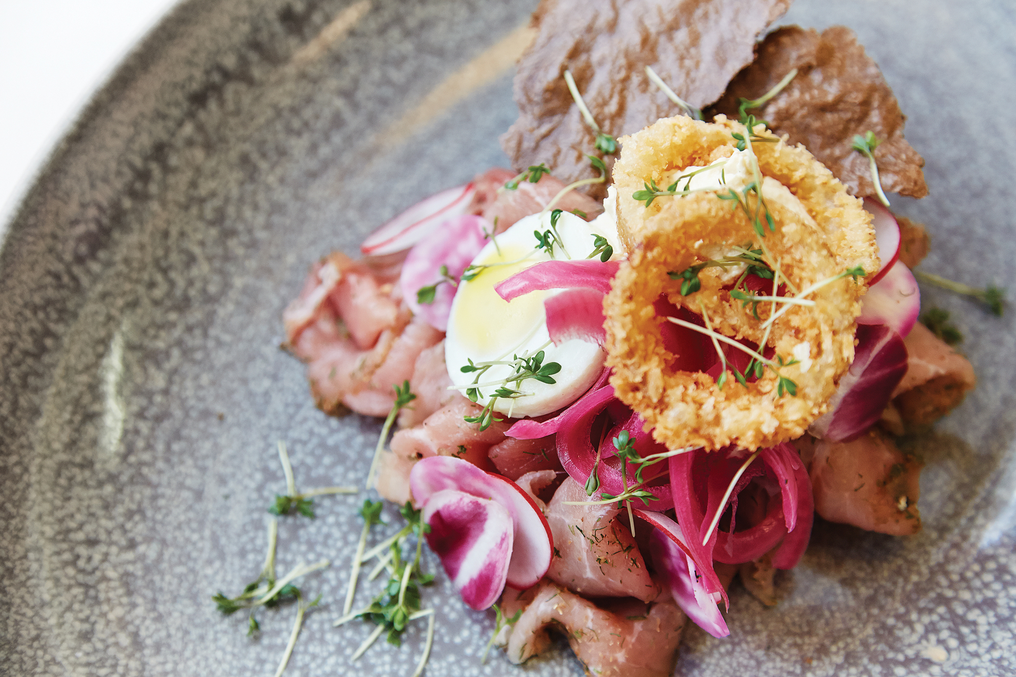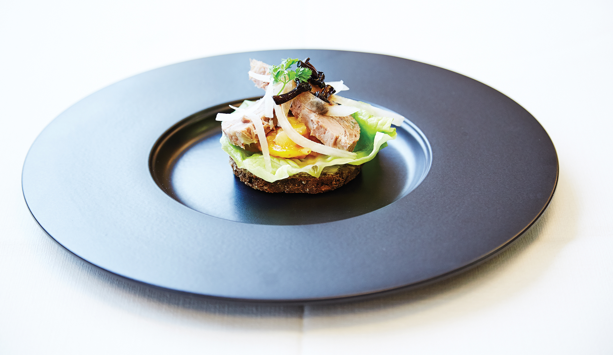 Smørrebrød med gravad svineinderlår