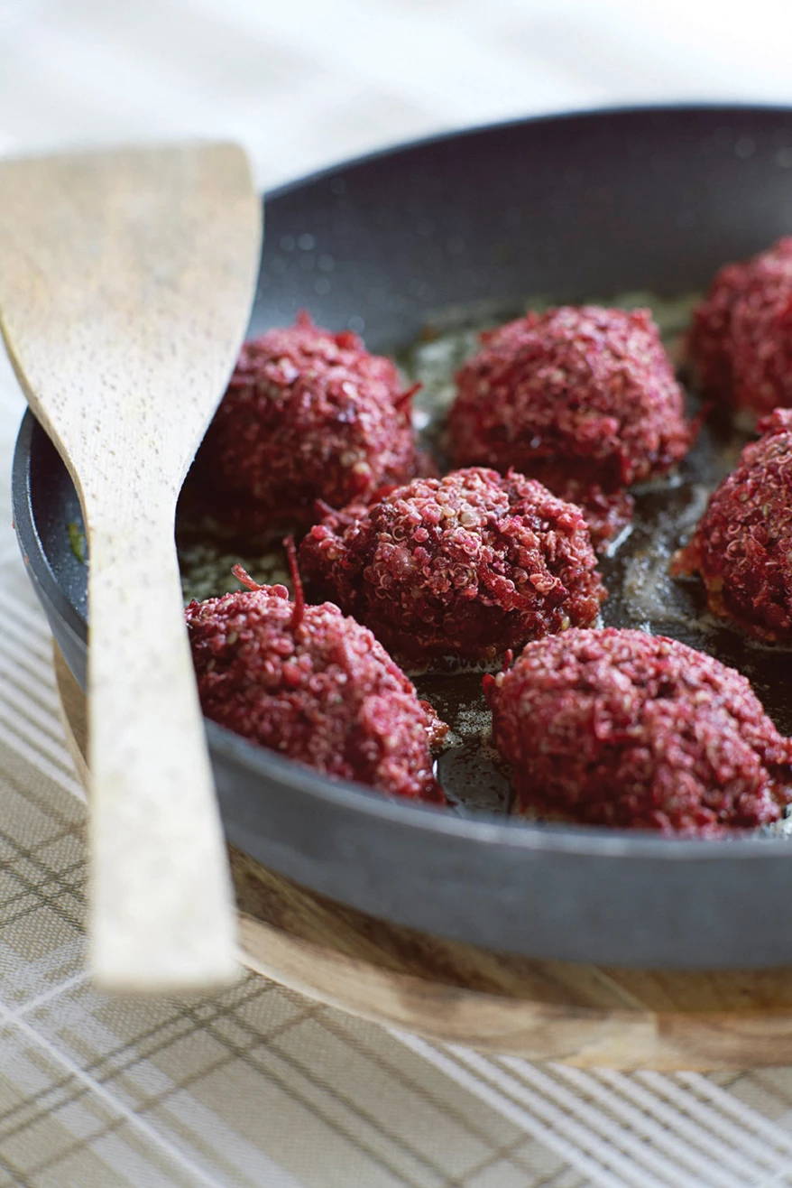 Anita Dietz' quinoa-frikadeller med rødbeder og tang-granulat.