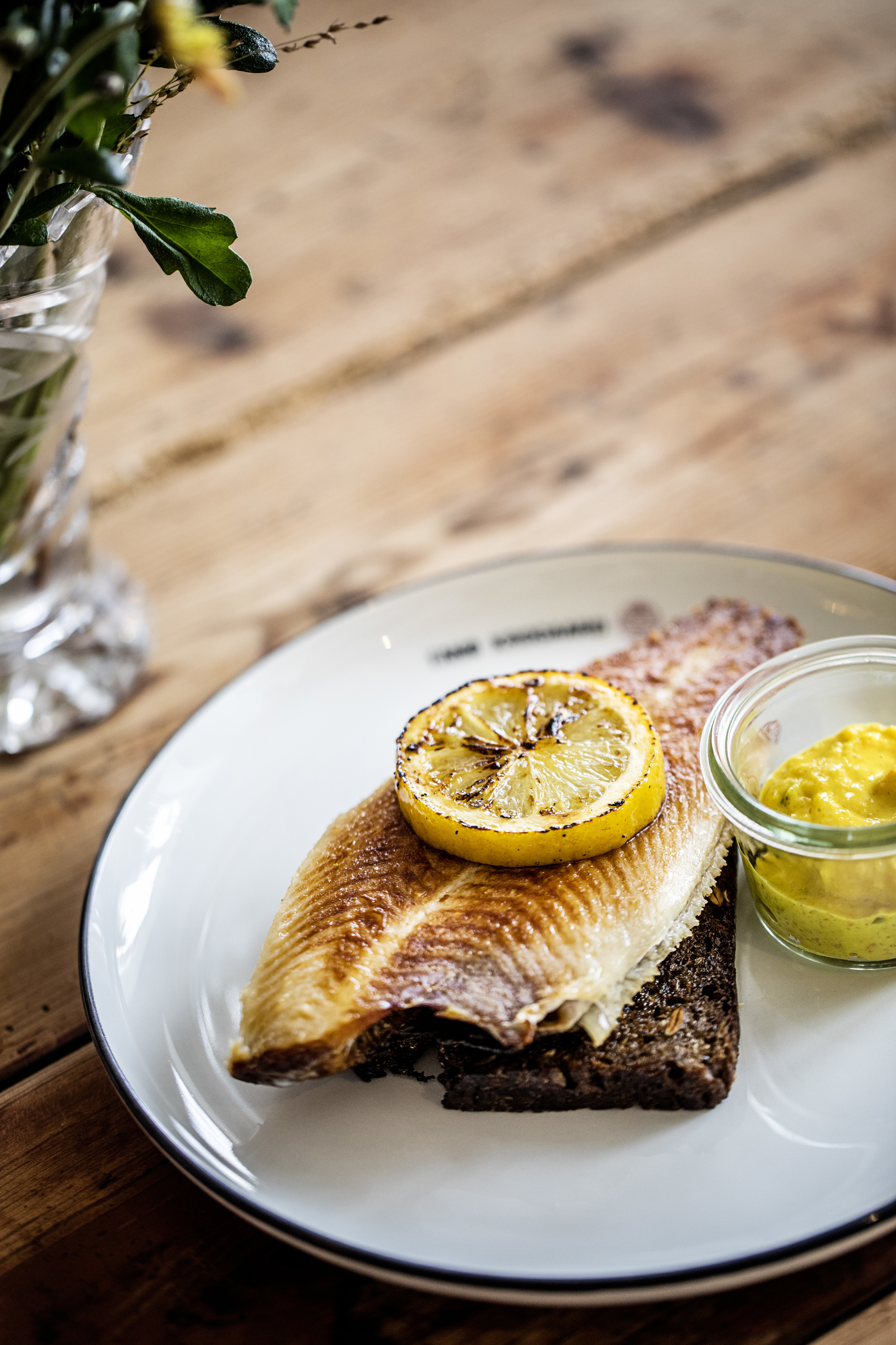 Det fungerer, smager godt og ser godt ud, konstaterer gæsteanmeldelserne. For der er selvfølgelig tænkt over alle detaljer i serveringerne. Kasper har fået sine ønsker til tallerkener opfyldt – et design uden kant, så ’der kan være sovs på hele tallerkenen.’ Porcelæn, der ikke bliver en forklædning for maden, men alligevel har personlighed – ergo: Holdbare og flotte Figgjo med egen dekor i form af navn og et poststempel med kroens beliggenhed som koordinater.