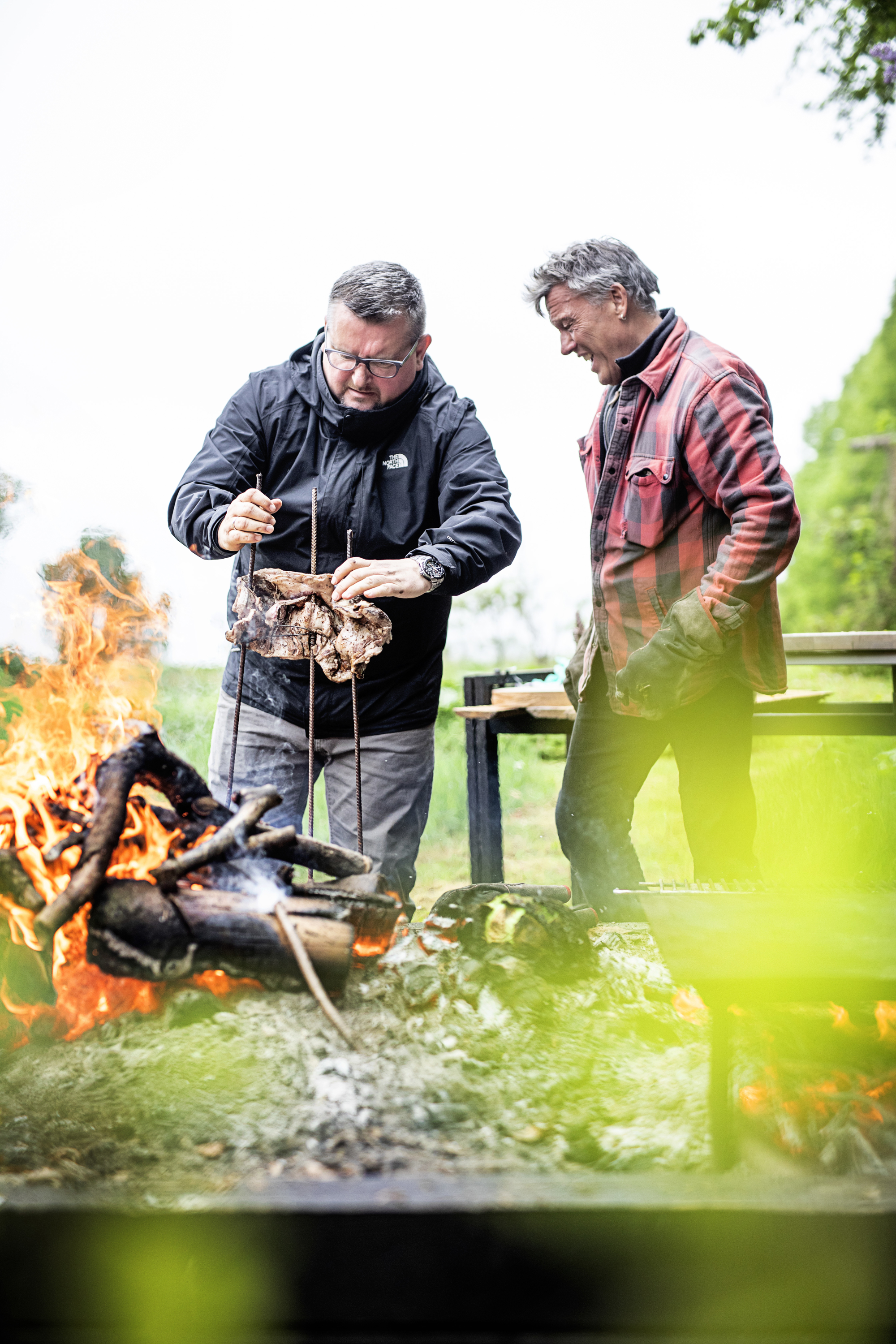Dengang, som i dag, hvor Dennis og Karsten mødes igen er de enige om, at deres store erfaring og faglige ballast er en kæmpe fordel, når man kaster sig ud i disciplinen 'bålmad til mange' uden kernetemperaturmålere i et egenrådigt hav af gløder.