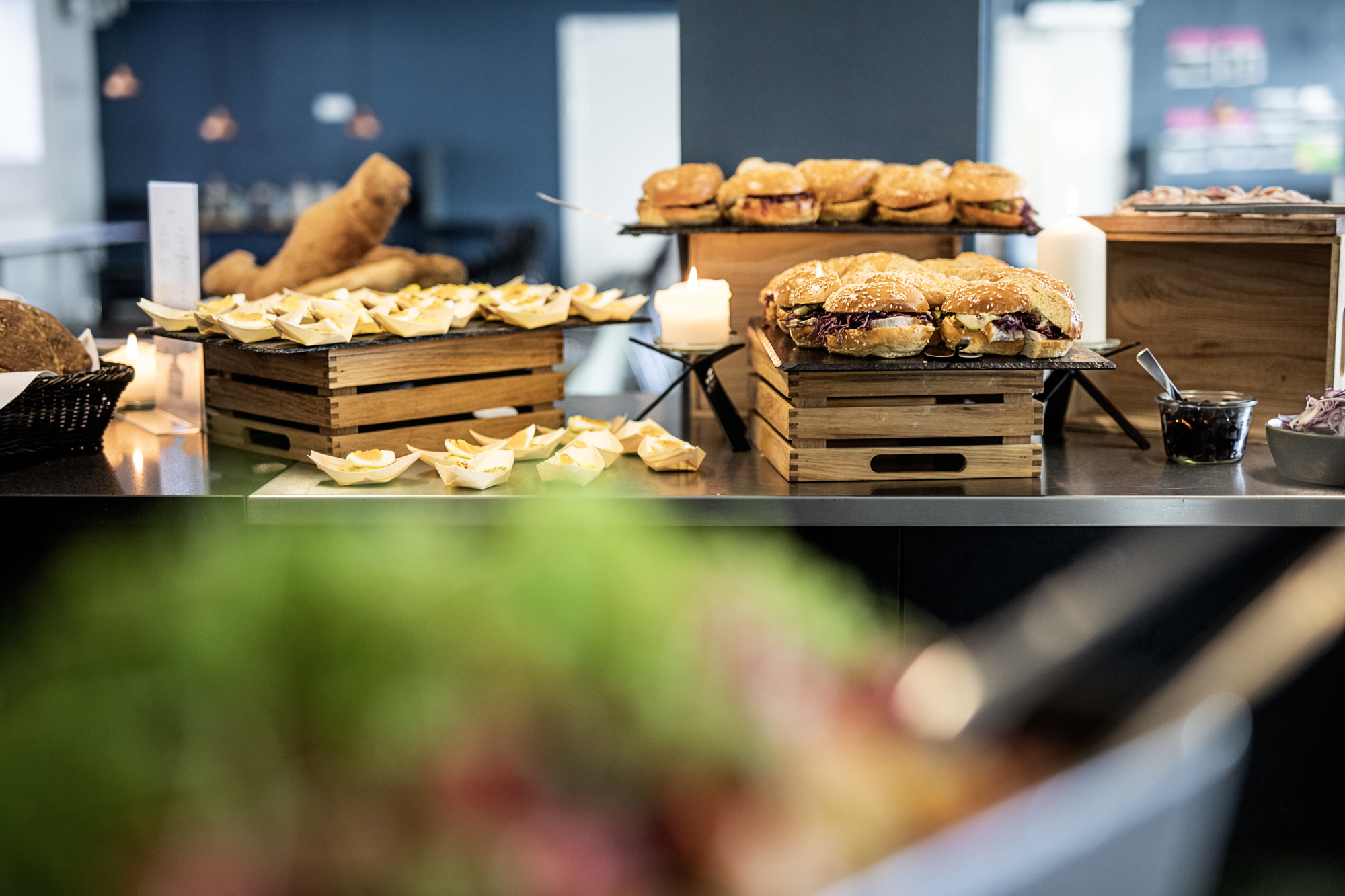 Hos kommunernes it-fællesskab, Kombit, står 2 kokke hver dag og portionsanretter de varme retter ved buffeten. Fordi det gi'r en god snak med gæsterne, det sparer penge, og det kniber i øvrigt med pladsen i køkkenet.