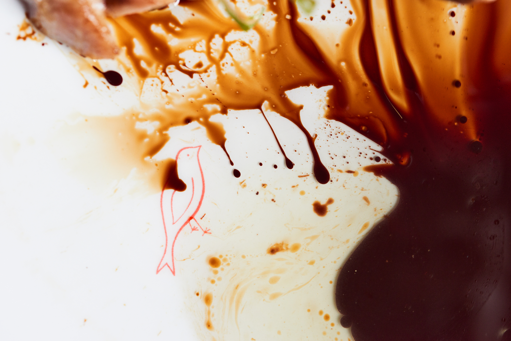 Ydersiden af skålene er dekoreret med fuglens diskrete fodaftryk