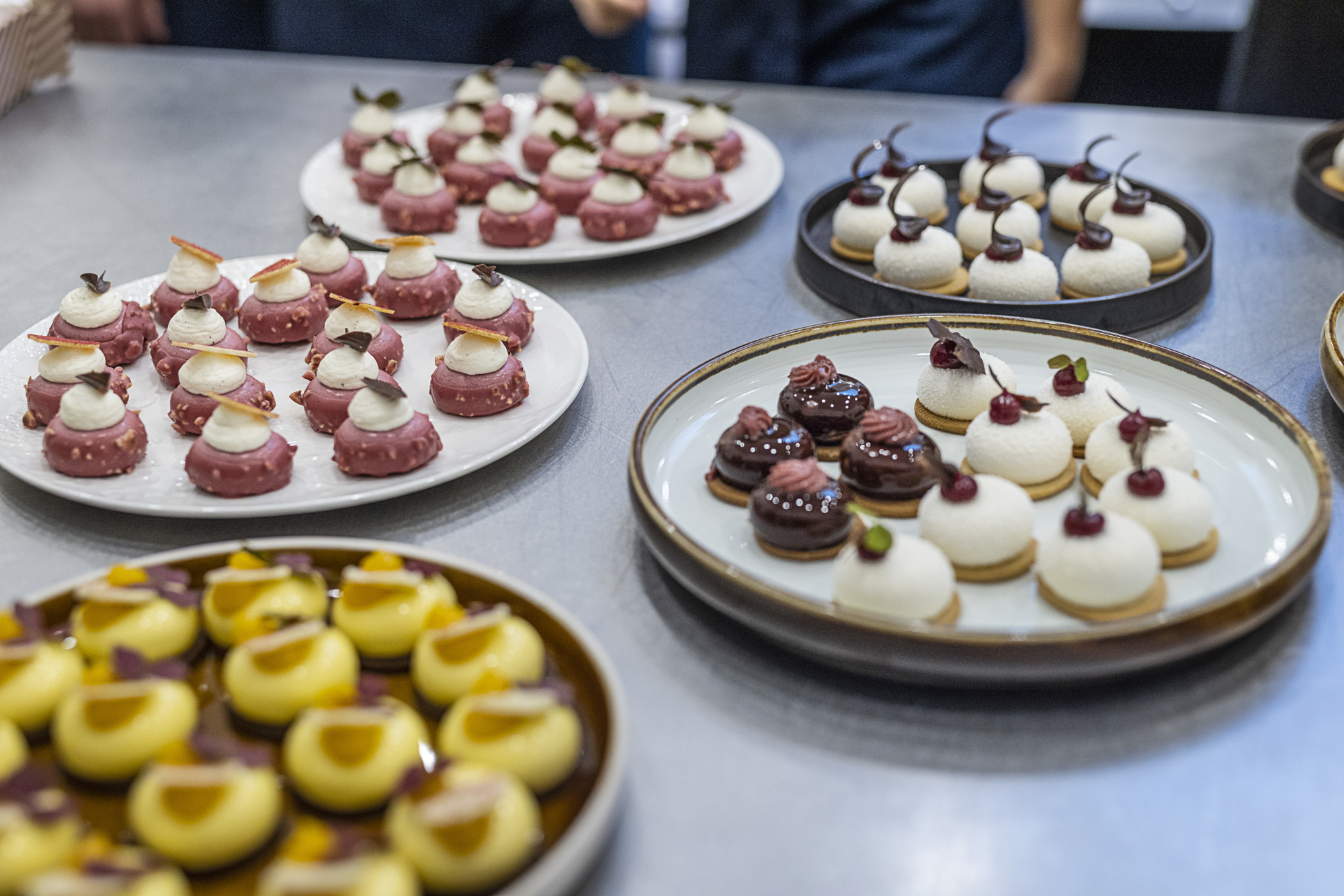 Der blev bl.a. arbejdet med tidens store konditortrend, glace, i flotte farver, da repræsentanter fra Konditorlandsholdet gæstede BENT BRANDT til en udbytterig inspirationsdag for kageinteresserede køkkenprofessionelle. Temaet var petit fours i den avancerede kategori, og deltagernes gæster kan godt glæde sig. Måske har de allerede fået en forsmag på Instagram, for netop de skulpturelle delikatesser er et af de helt store hit på det sociale medie.
