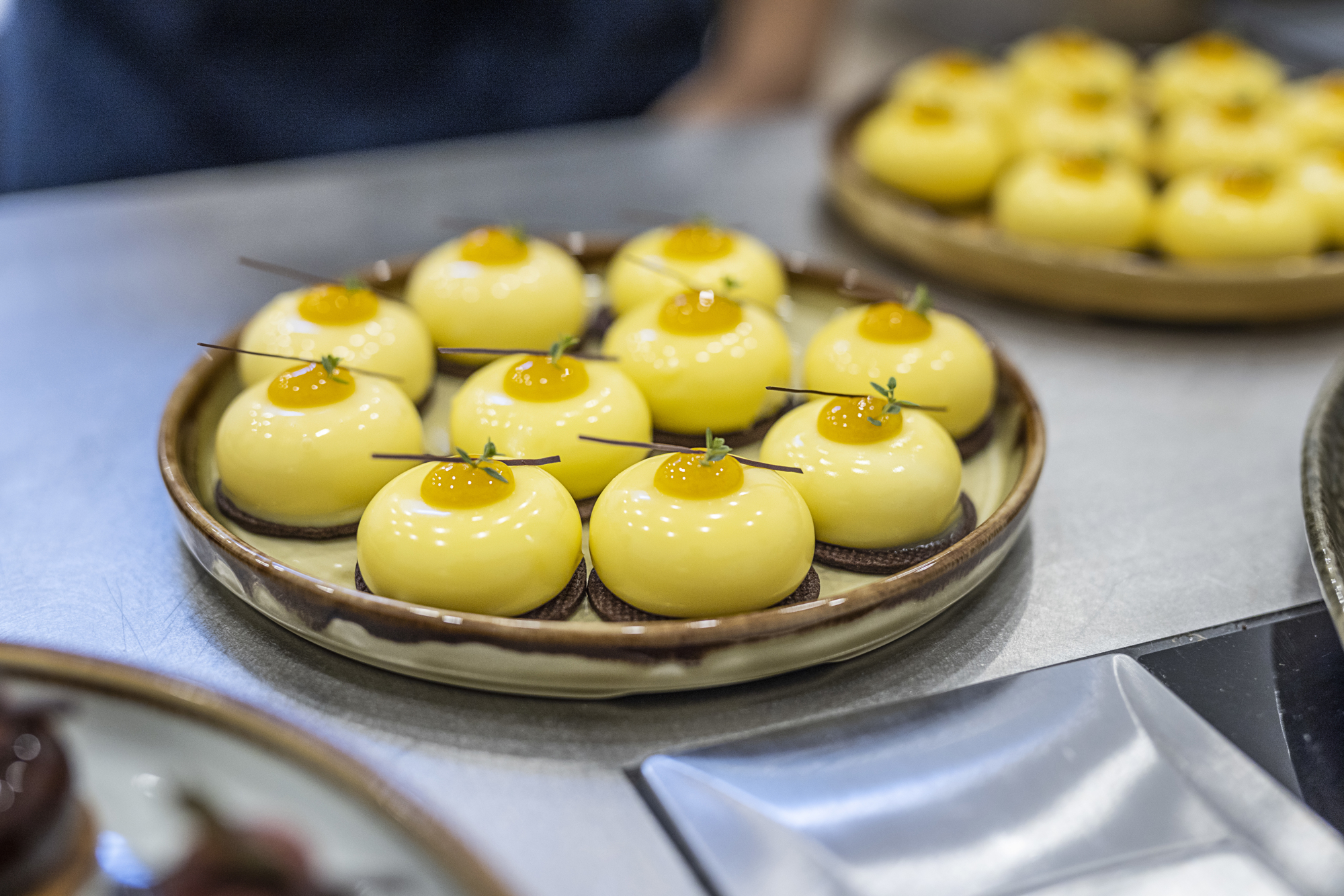 Omvendt bistår landsholdskokkene med råd og vurdering af den restaurantdessert, som indgår i Konditorlandsholdets kommende VM-udfordring, der også omfatter Frozen Fingerfoods og islagkager. ”Vi skal lave 3 forskellige islagkager, der skal have samme konsistens, og som derfor kræver eksperimenter med forskellige stabilisatorer. Vi laver også en chokolademousse, hvor det har taget lang tid at finde frem til 3 forskellige, nøje afstemte og afmålte chokolader, som tilsammen giver den frugtighed og bitterhed, vi søger,” fortæller Dennis, der i 6 år var medlem af Cateringlandsholdet, og som glæder sig til samarbejdet med Unionens nyeste medlem, Bagerlandsholdet.