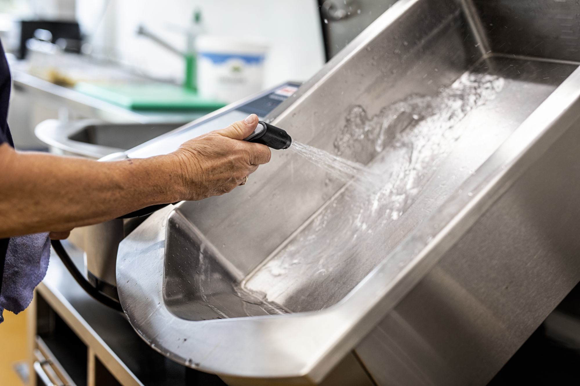 2 ovne ville give den fleksibilitet, der var brug for. Og i dag kan Vibeke se, hvor meget det betyder at lade ovnens programmer styre mange af tilberedningerne, så hun og Tina kan lave noget andet imens. Og den helt store hjælp i forhold til den gamle Rational er det automatiske rengøringsprogram, der kan køre om natten, så man møder ind til en ovn så ren som ny. ”Det sparer TIMER, og den siger selv til, når det er nødvendigt,” lyder det.