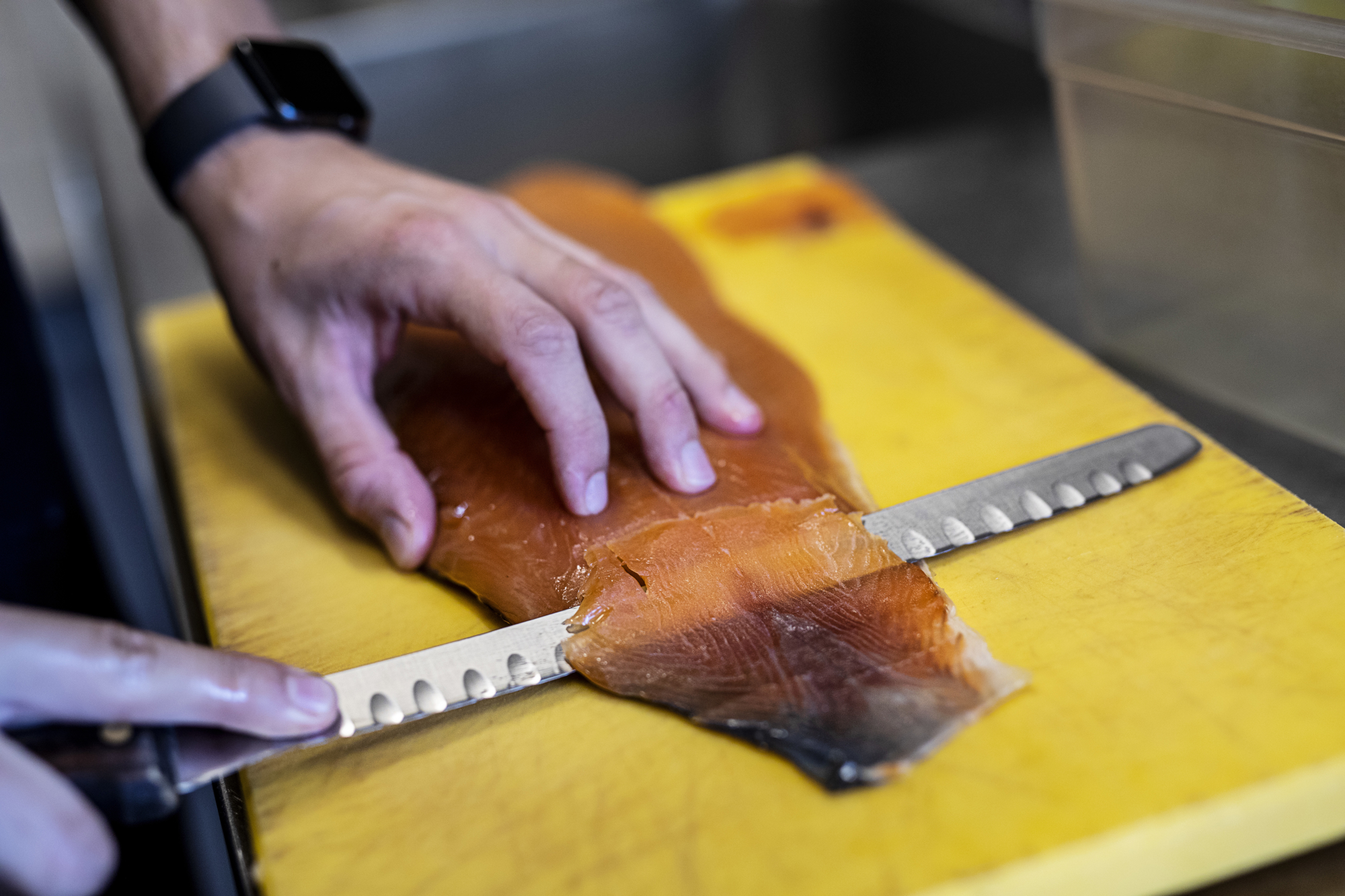 "Køkkenet i Spisehuset er meget lille, så vi forproducerer i pakhusets køkken," fortæller Thomas. "Omvendt holder vi kun åbent i pakhuset for selskaber fra oktober til påske og flytter i den periode café- og a la carte-serveringen til Spisehuset."