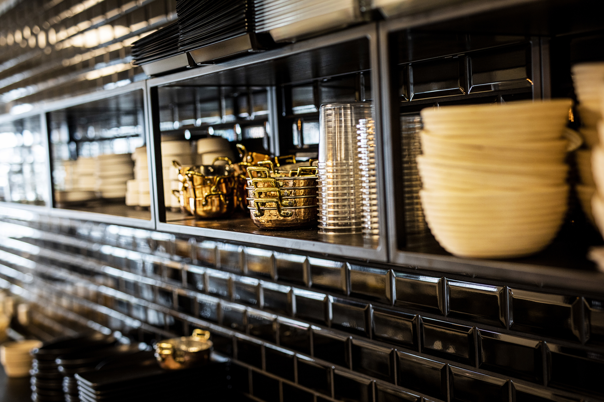 Også flere af køkkenets specialmaskiner er egen italiensk import, der er indpasset i køkkenets indretning, som konsulent Klaus Klinge fra BENT BRANDT har haft hånd i hanke med, lige som han formidlede kontakten til arkitekten bag indretningen af måske Danmarks flotteste familierestaurant.