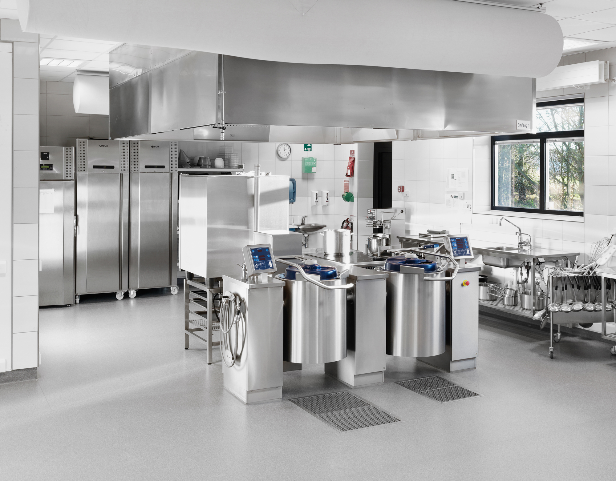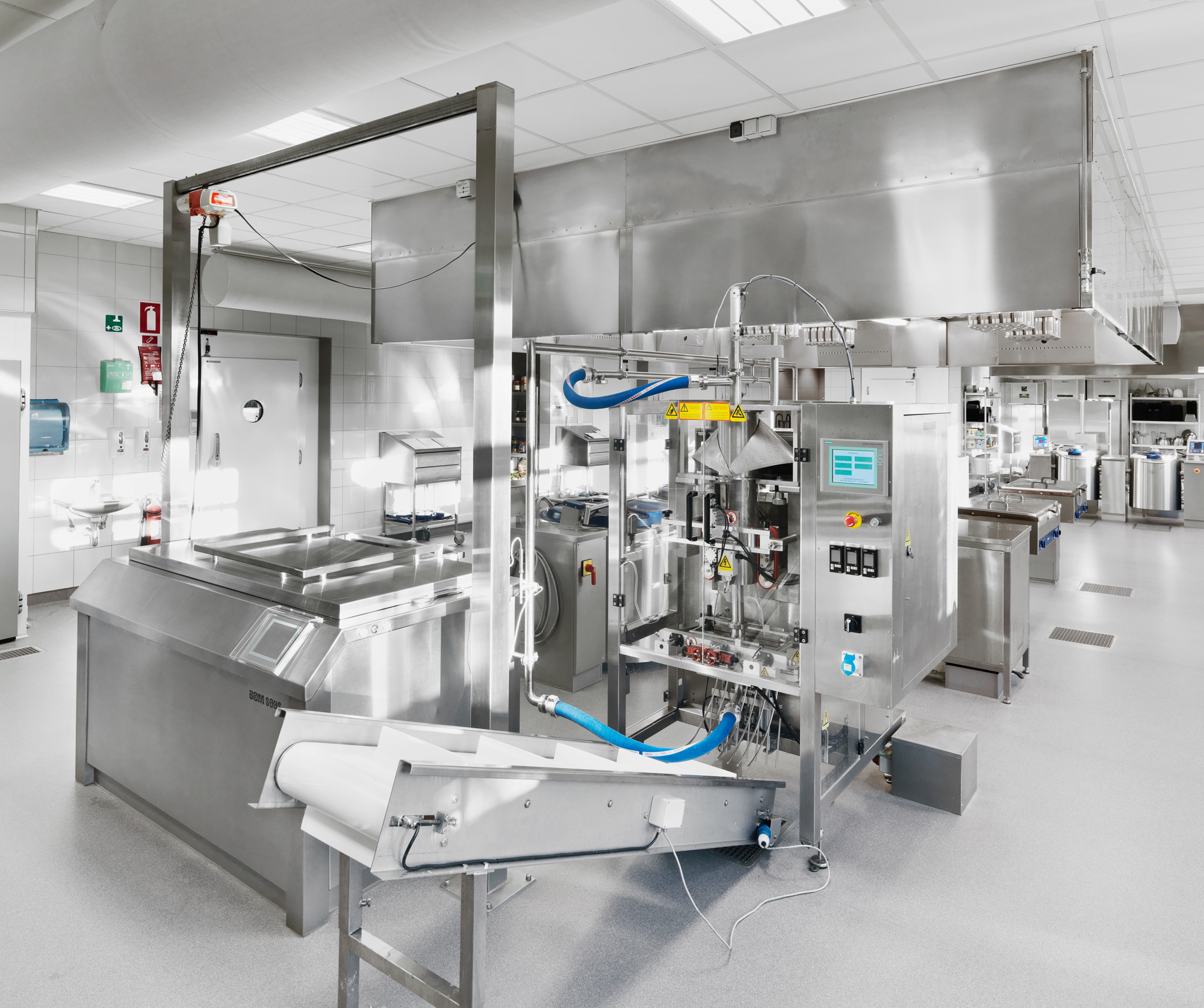 Udportioneringsmaskine samt sous-vide kar til nedkøling og langtidsstegning. Suppe- og saucekølere.