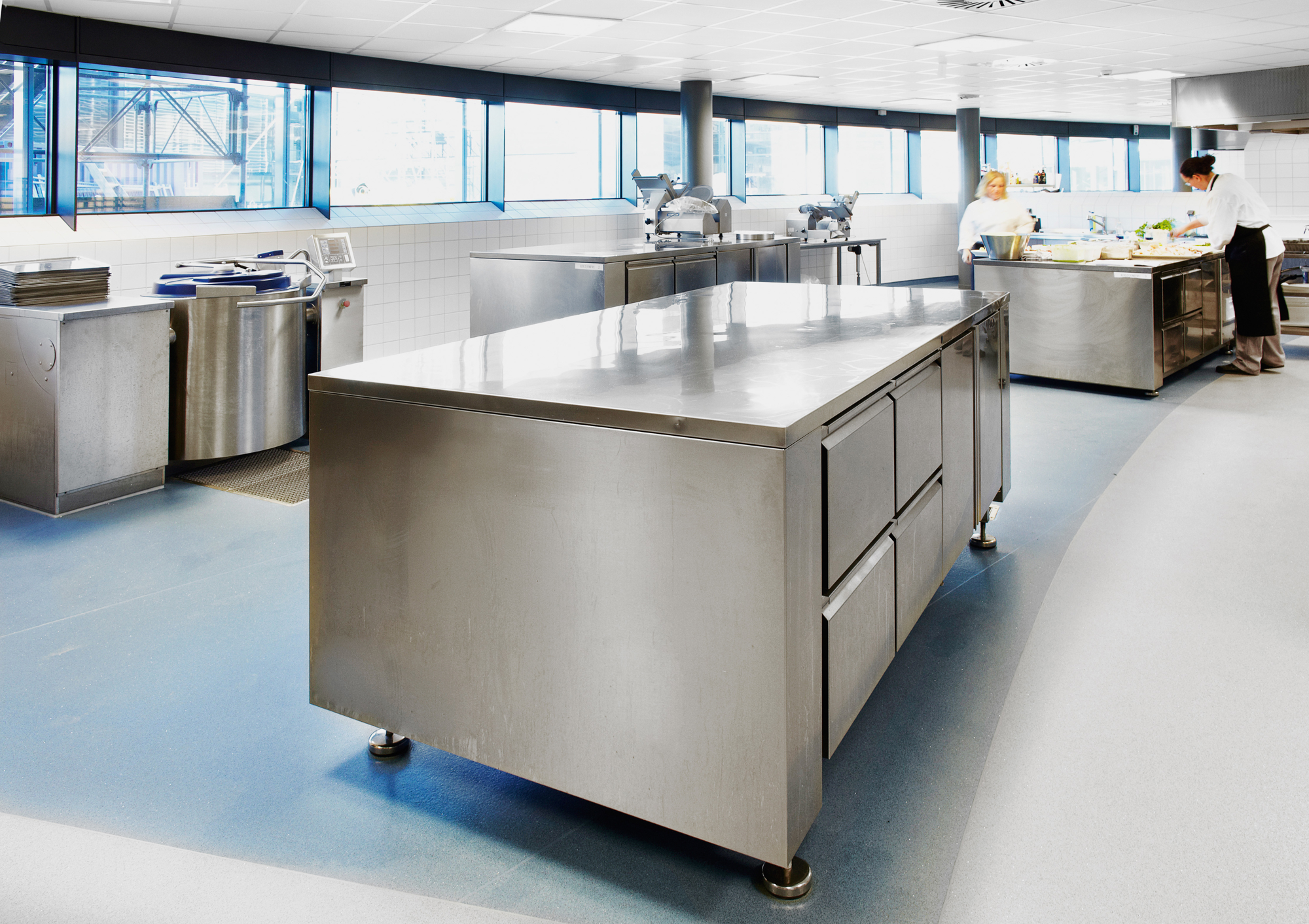 Køkkenet indeholder bl.a. specialfremstillede hæve-/sænkekøleborde med køl i toppladen.