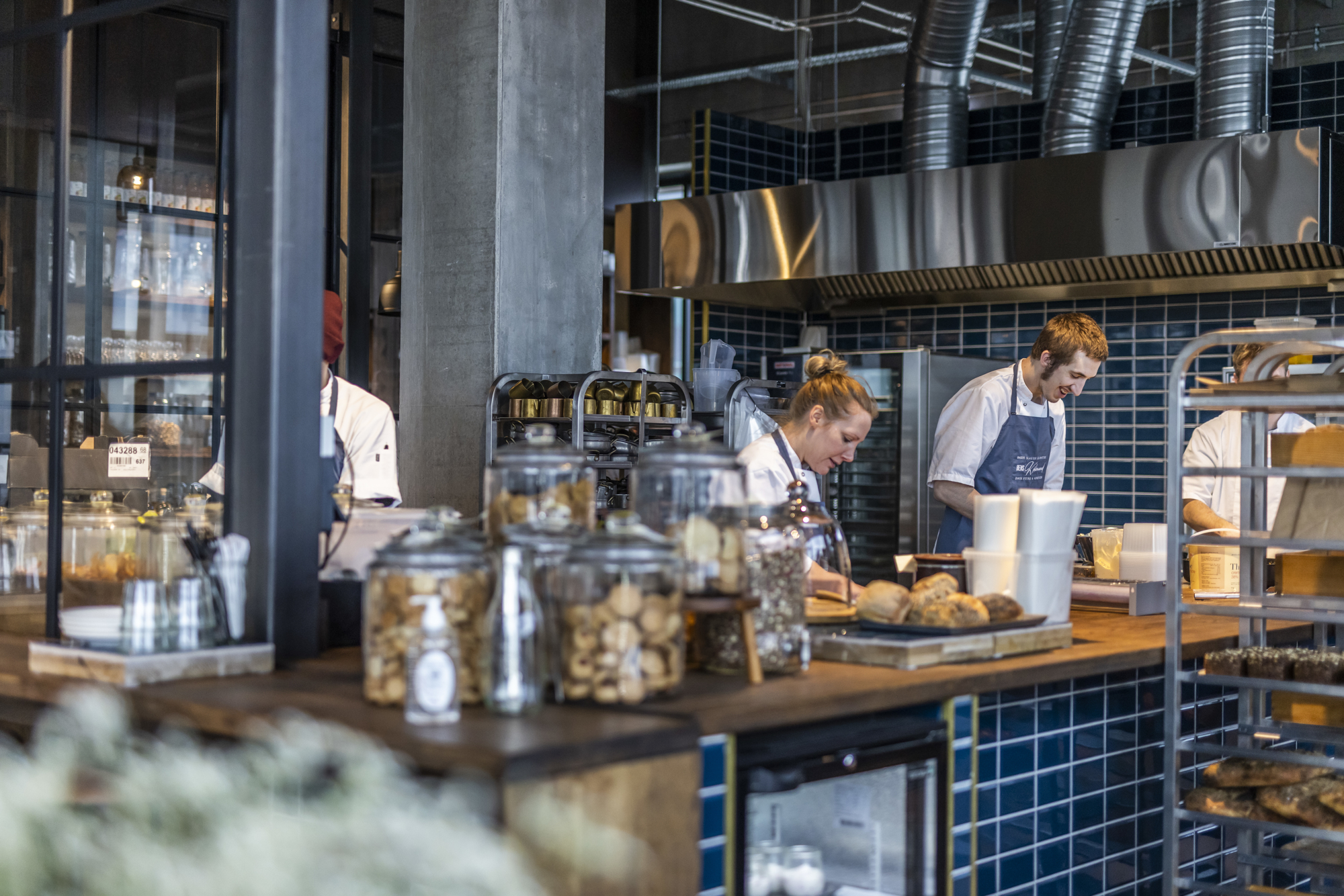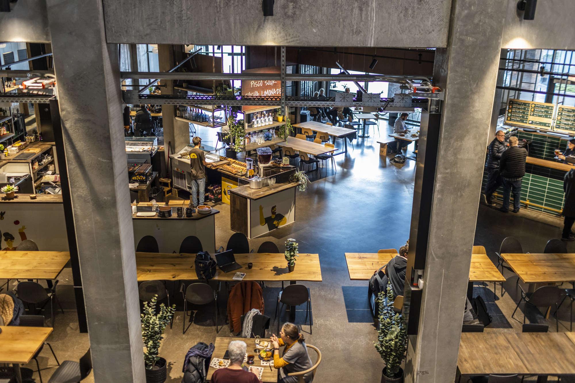 ”Det er et uforpligtende spisested, hvor vi har håndplukket et hold af aktører, der virkelig gør sig umage med deres madhåndværk. Det skal være ærligt, autentisk, lokalt, men samtidig globalt, og vi har valgt ildsjæle, der har lyst til at være synlige og i kontakt med gæsterne i hallen,” siger kommerciel direktør Jonas Syversen Kring. Han kom til jobbet med erfaring og netværk fra bl.a. festivalbranchen, og derfor havde han også forberedt et omfattende eventprogram, der dog få dage efter åbningen blev sat på pause – hallen var stuvende fuld hver dag!