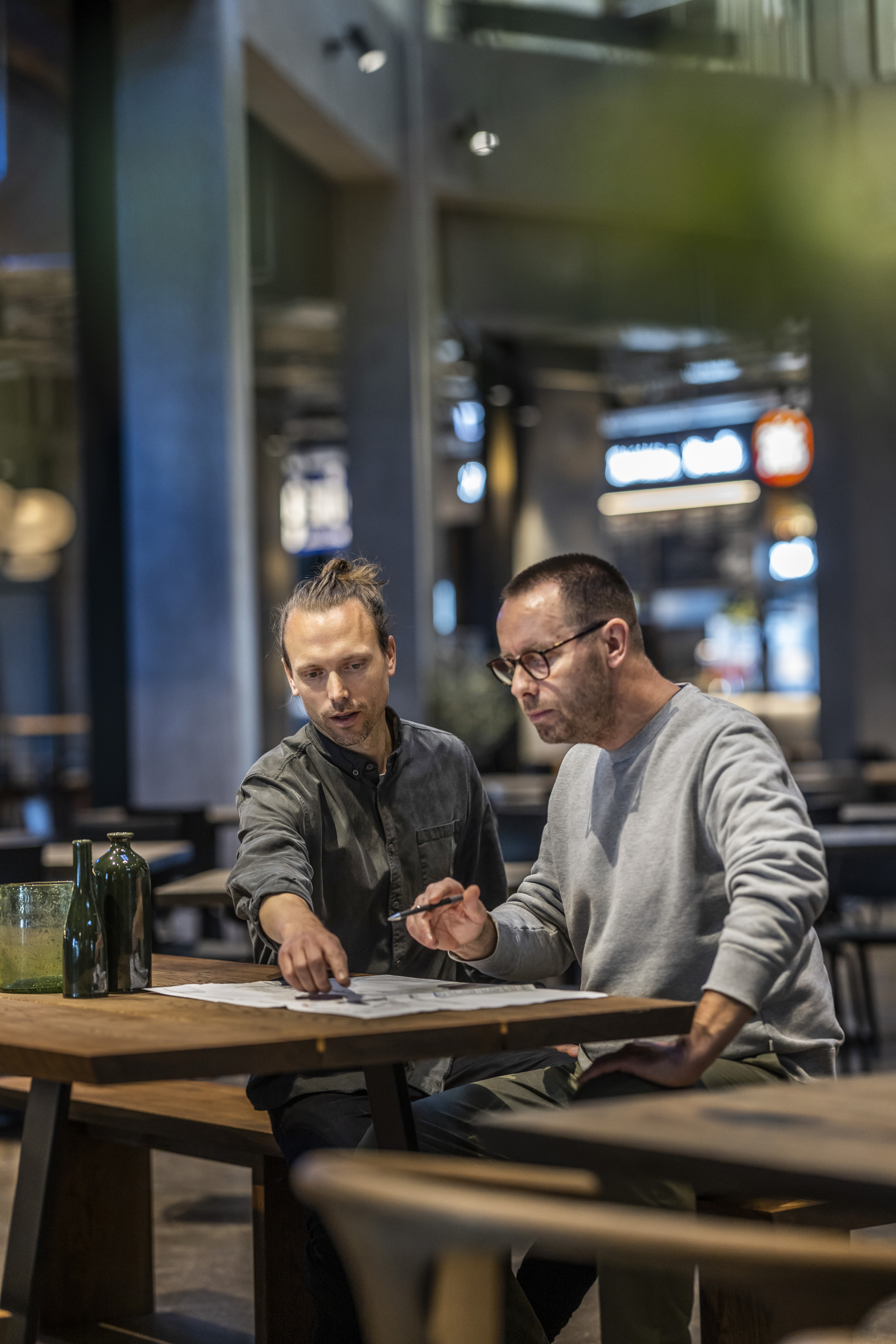 Opvasken og et fælles isterningerum var en del af den opgave, som konsulent Per Plesner fra BENT BRANDT blev stillet af Jonas. Dertil kom hjælp til indretning for 7 af hallens aktører – en hjælp, der omfattede både totalindretninger og integrering af nyt og brugt udstyr med aktørernes eget. En udfordring, som giver mening, lyder det fra Per, fordi forskelligheden styrker fornemmelsen af markedsplads i en bygning, der ellers er funklende flot, moderne arkitektur.