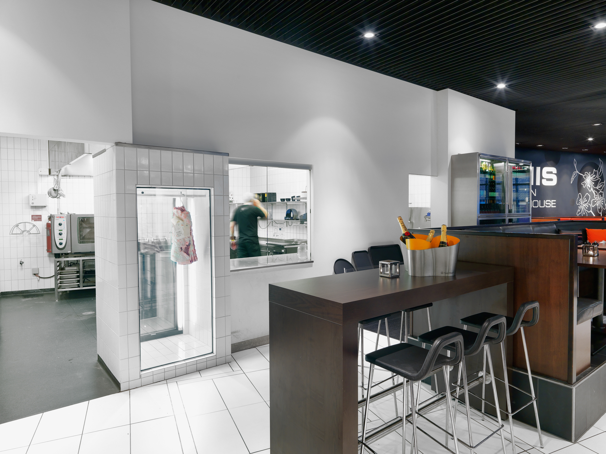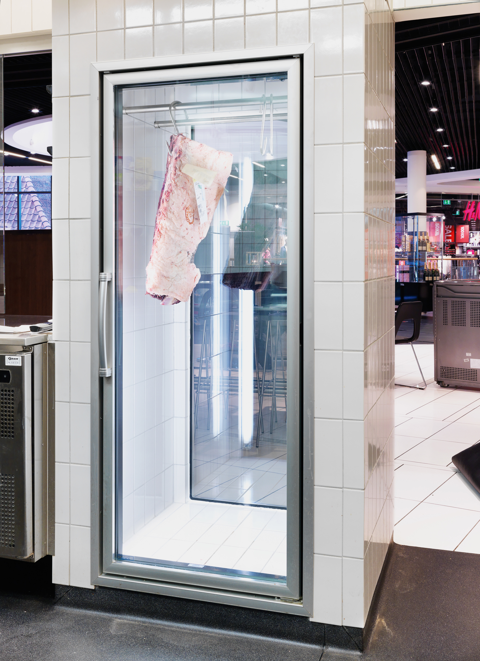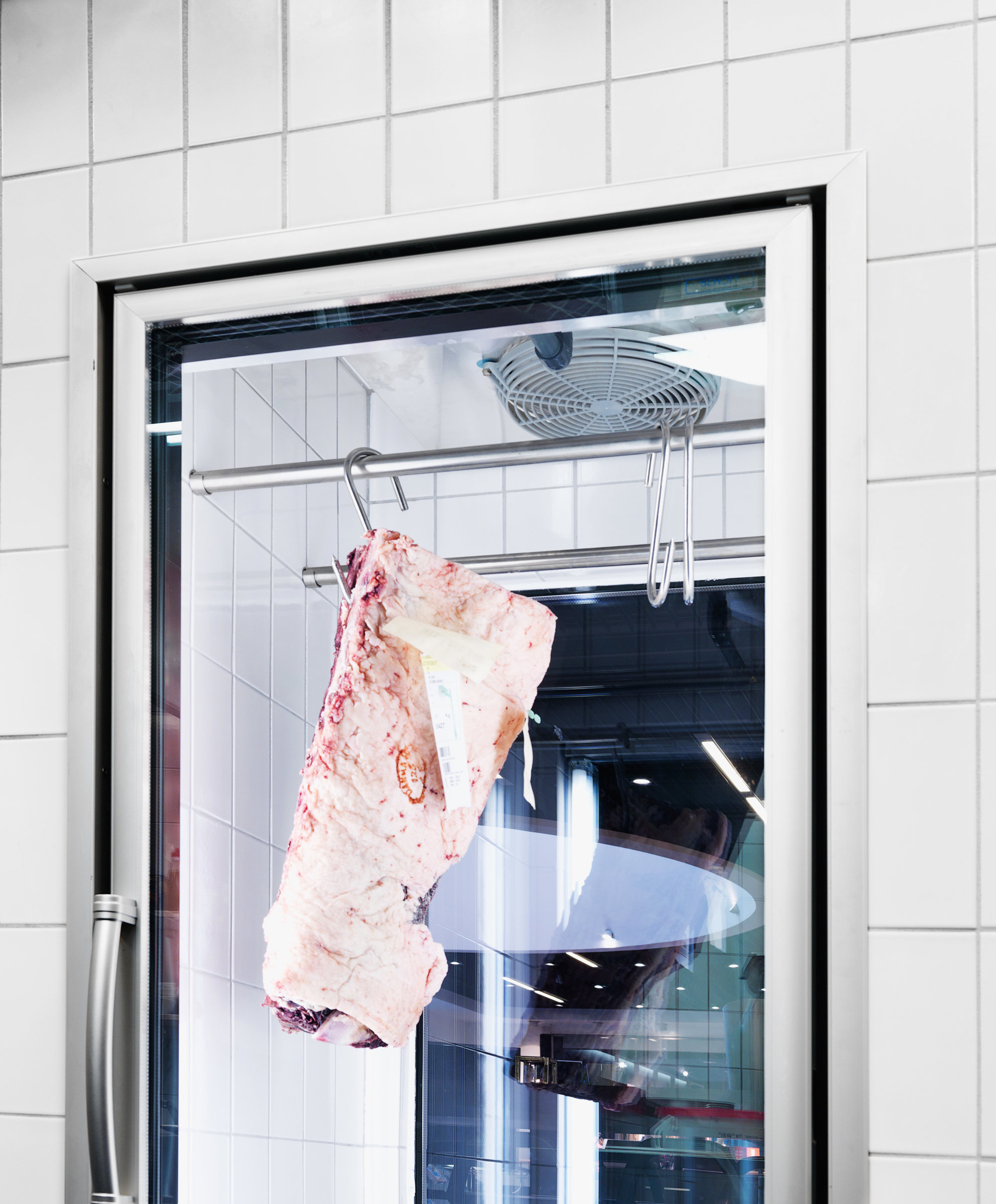 Det specialbyggede kødkøleskab med termoglas og ekstern kompressor anvendes til modning af kød.