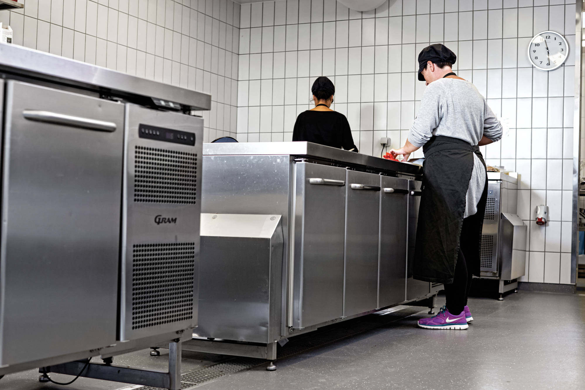 Det gamle køkken var åbent, så gæsterne kunne følge med, når der blev pillet løg og stegt bøffer. Det var der mange af dem, der arbejdede i køkkenet, der ikke brød sig om. Foruden Lone og fire faste medarbejdere, tilberedes den gode mad på Social- og Sundhedsskolen i Esbjerg af 10-15 personer, der nogle dage om ugen er i arbejdsprøvning, og for dem var synligheden ofte grænseoverskridende.