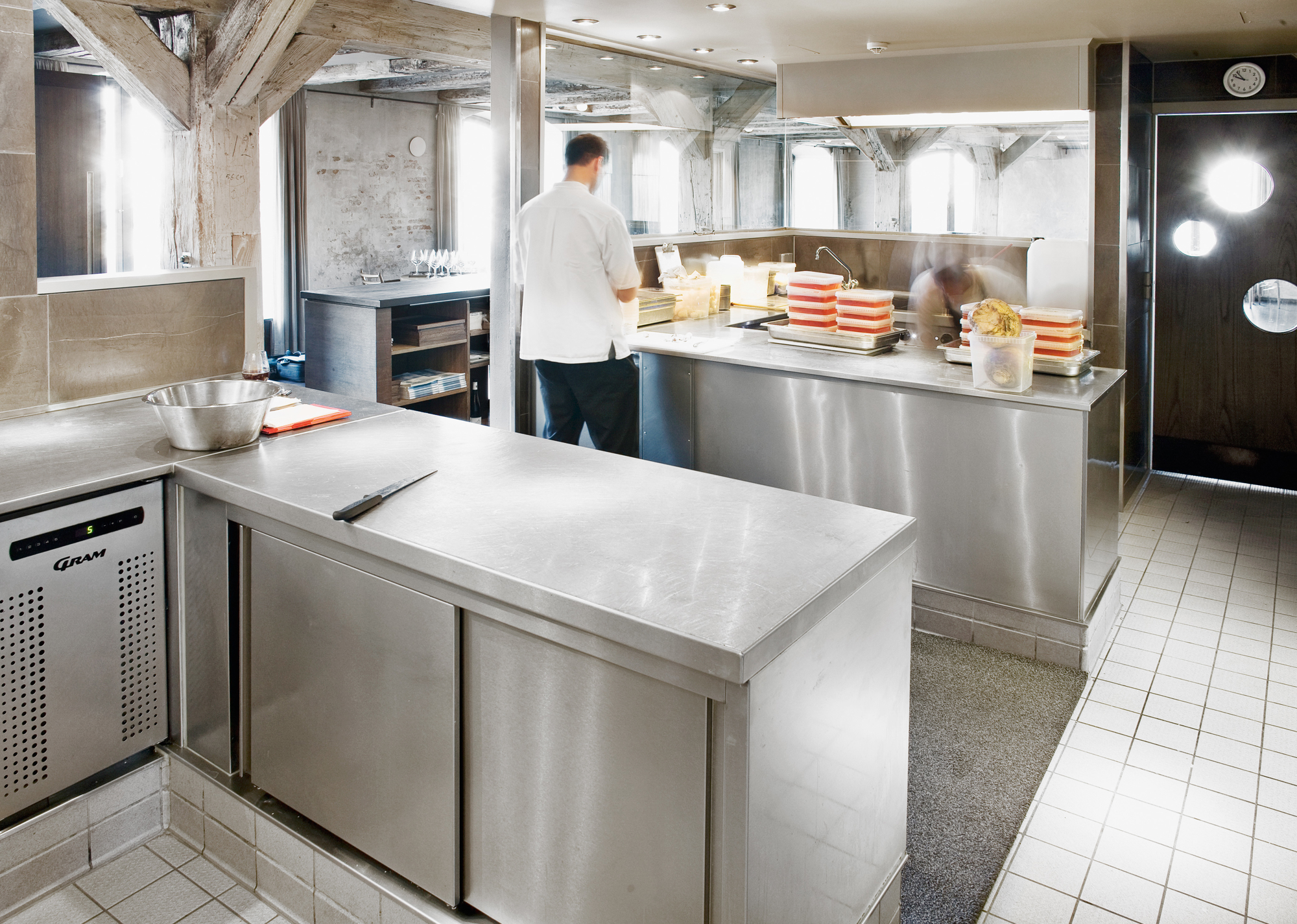 Borde på murede sokler gør køkkenet meget rengøringsvenligt.