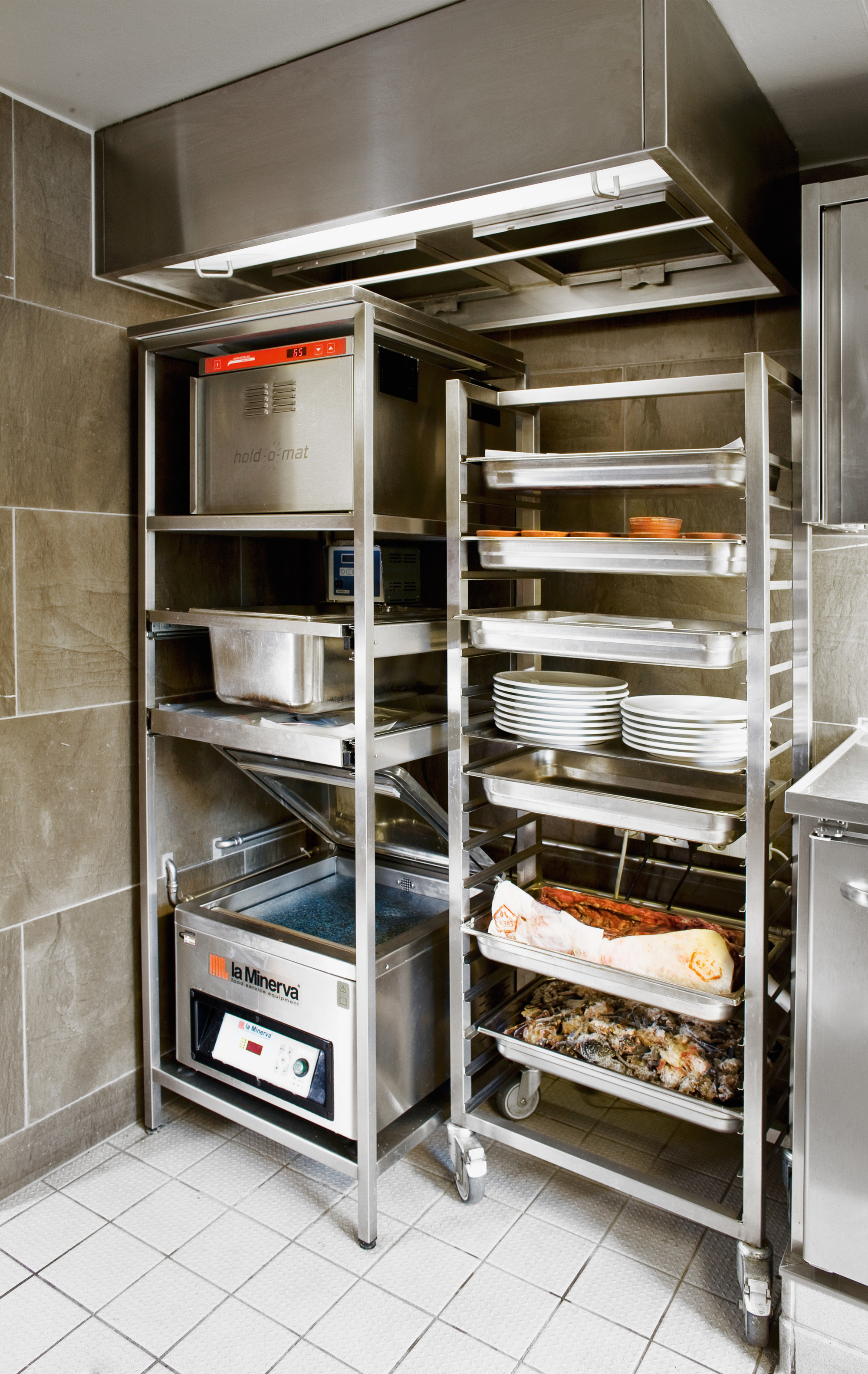 Små maskiner indbygget i et specialfremstillet stativ, som sikrer orden og sparer plads.