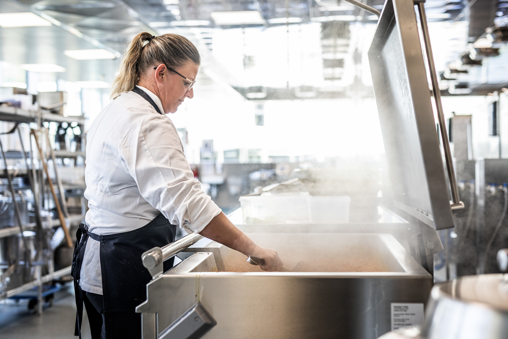 Og så er der det nye – bl.a. en Rational iVario Pro (tidligere kendt som Frima), som Jonas har store forventninger til kan spare tid i processer, der tidligere har krævet stor komfurkapacitet. I dag klarer et enkelt MKN-kogebord med fladeinduktion opgaverne i a la carte-køkkenet.