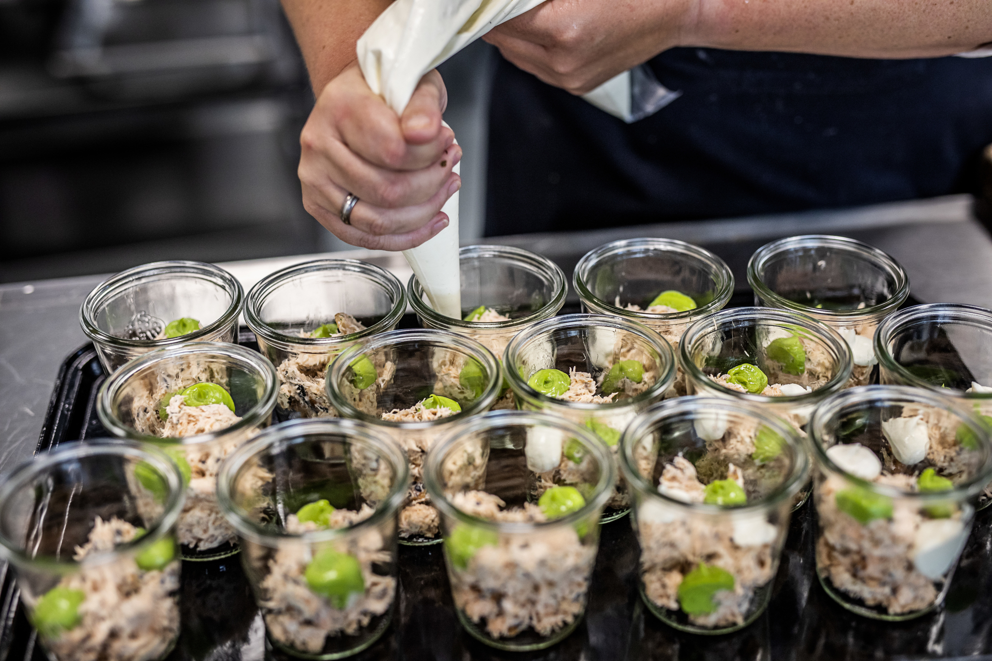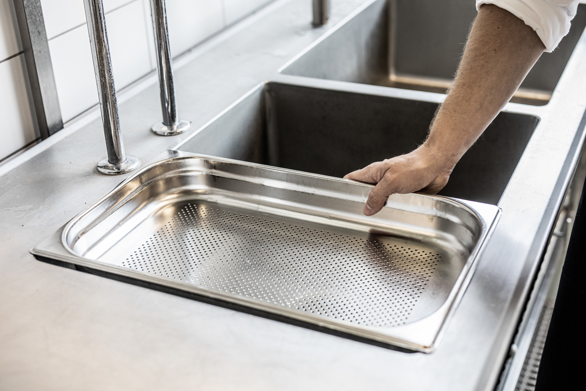 Det grundige forarbejde har ikke mindst sat sine spor i et meget velfungerende flow i køkkenet, men det har også givet mulighed for at være på forkant med de hygiejnekrav, som Jonas forventer myndighederne vil stille i fremtiden. F.eks. er der bygget omklædningsrum kun til køkkenmedarbejderne, og lige som personaletoiletterne er der her kun adgang ved hjælp af et nøglekort. Rengøring og råvarehåndtering er tænkt ind i alle detaljer, og Levnedsmiddelstyrelsen havde ikke en eneste kommentar under godkendelsesbesøget. Man kalder det et skoleeksempel…